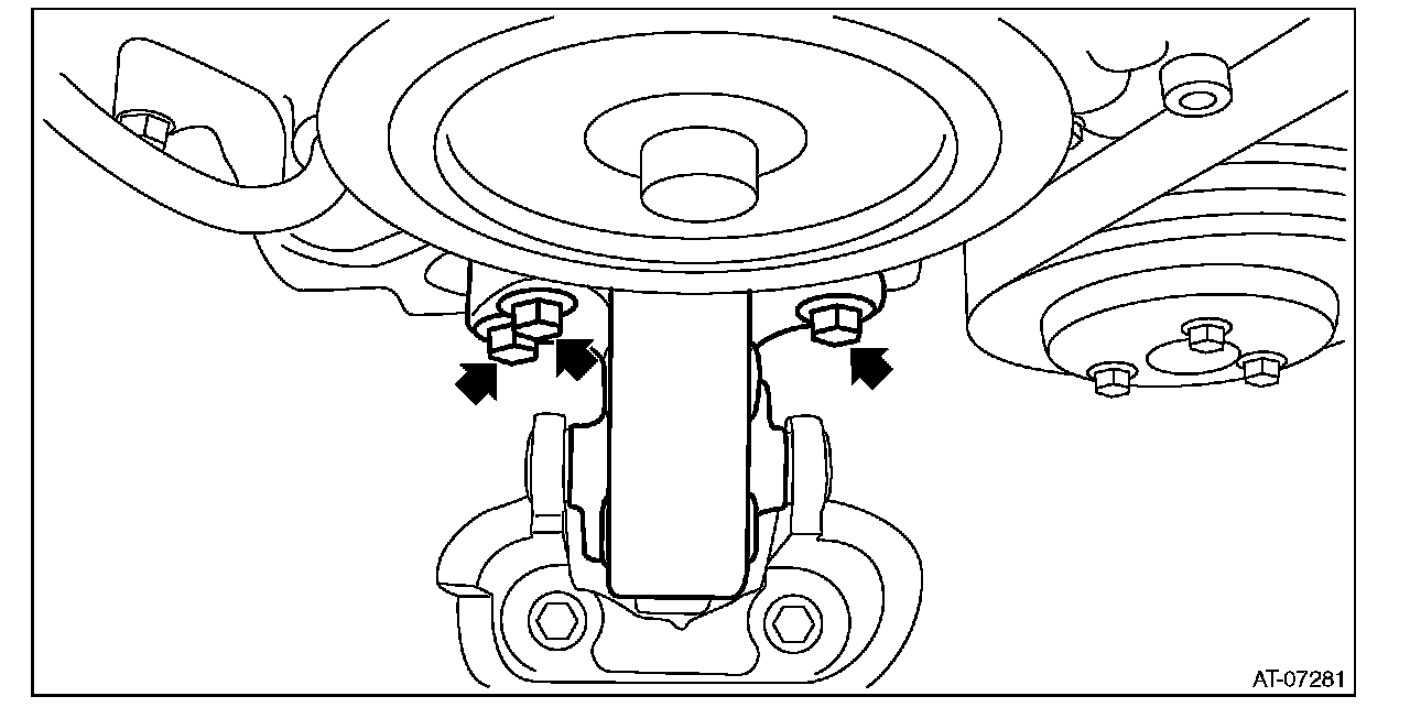 13) Install the three engine mounting bolts (upper side).