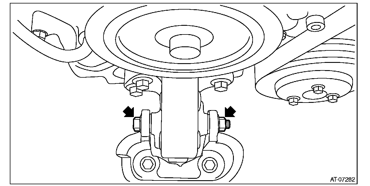 7) Install the two engine connecting bolts and two nuts (lower side).