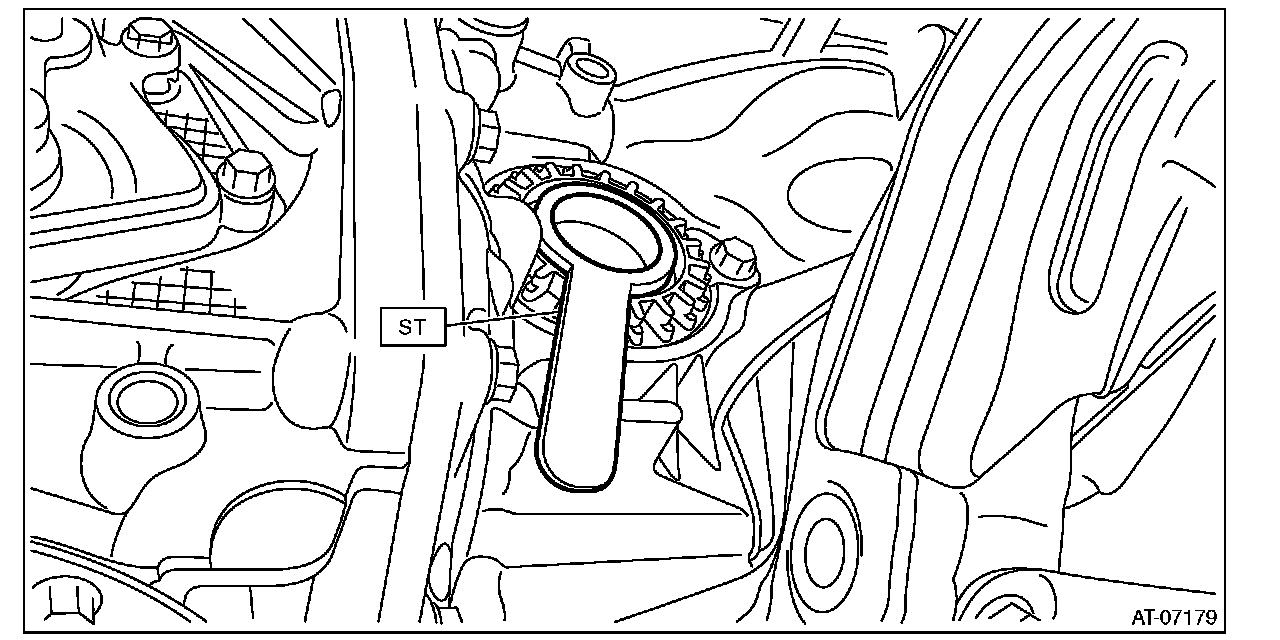 33) Insert the front drive shaft spline section into transmission and remove the ST (OIL SEAL PROTECTOR).