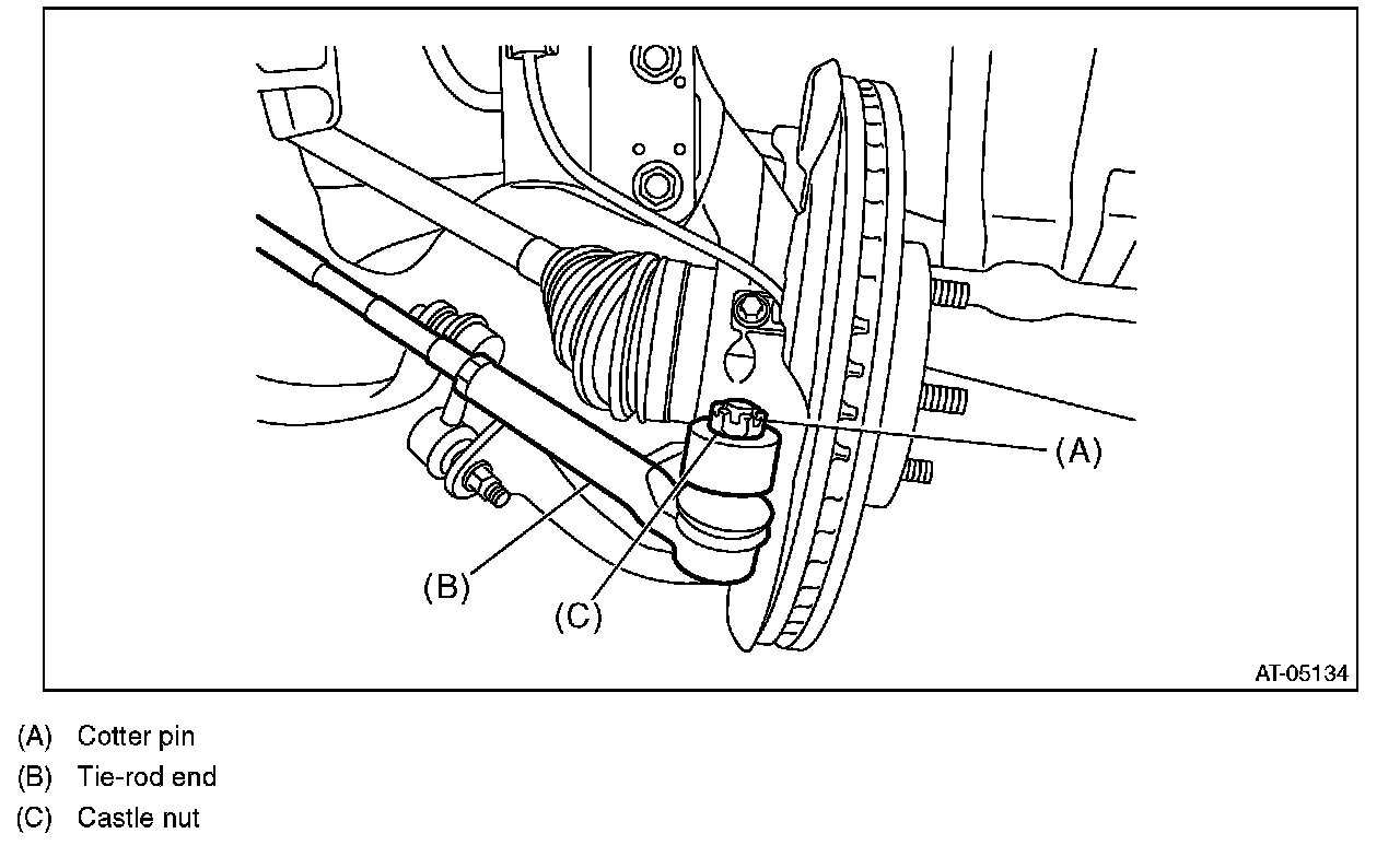 38) Connect the tie-rod end and knuckle arm, and attach the castle nut.