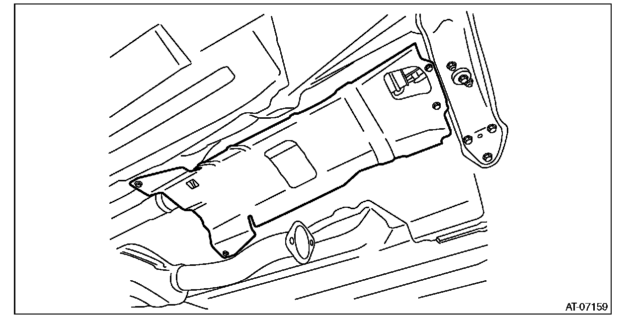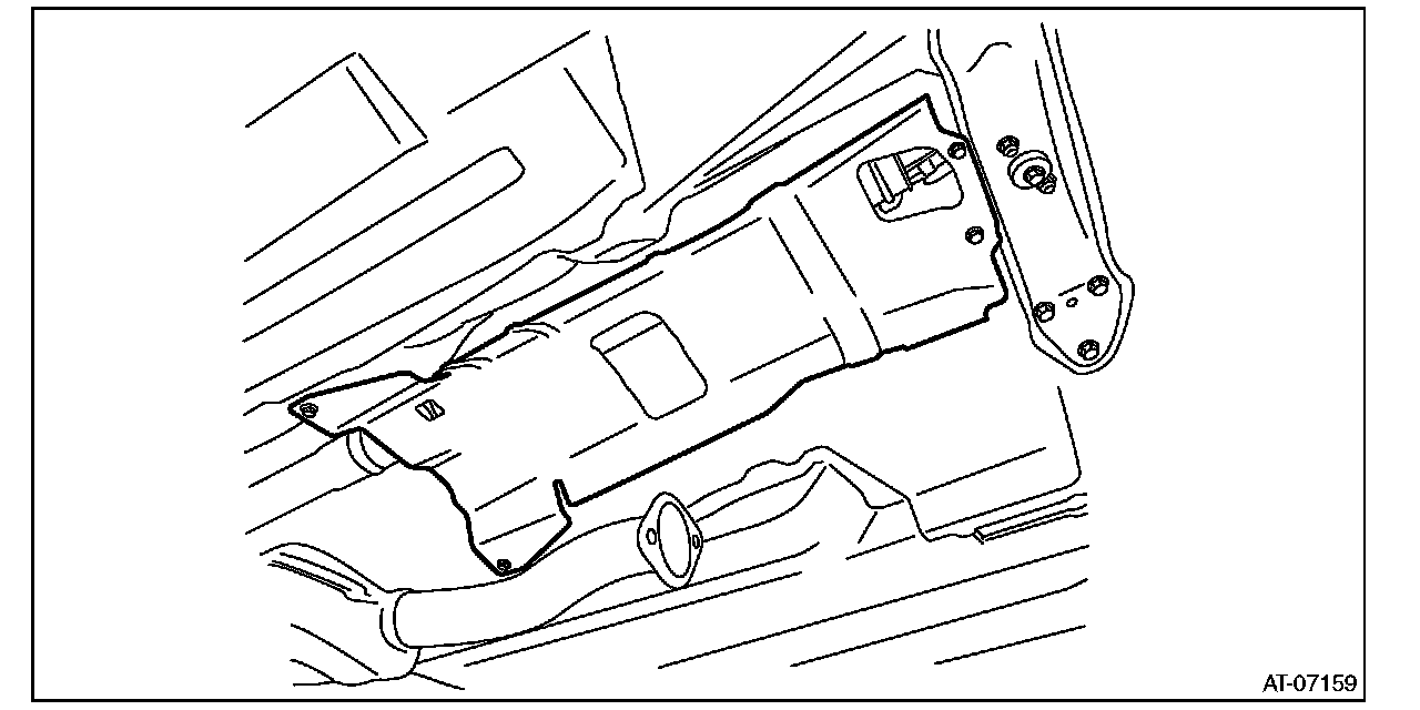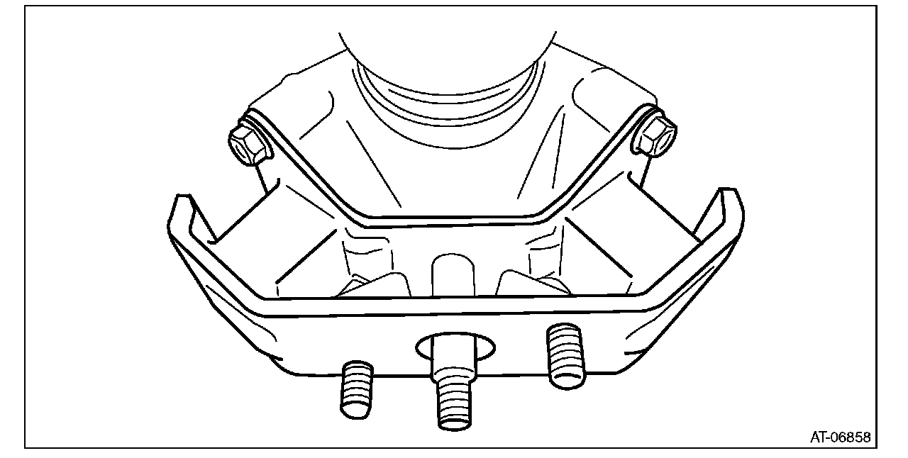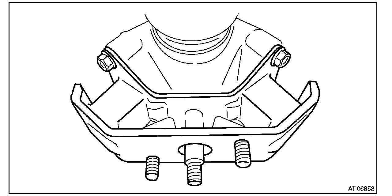 5) Set the transmission jack under the transmission. Make sure that the support plate of transmission jack does not touch the oil pan.