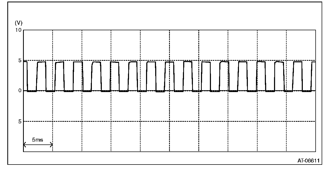 6) Check the waveform and output voltage of the secondary speed sensor with engine idling.