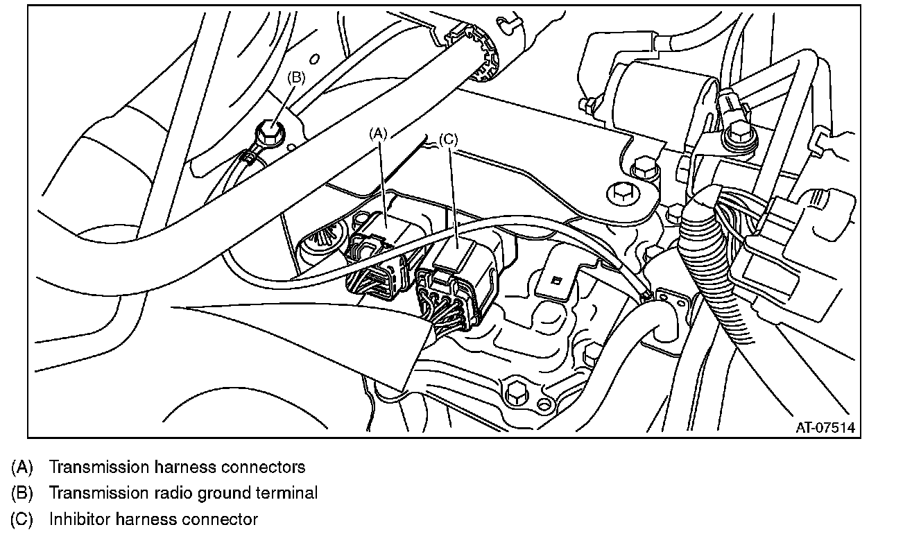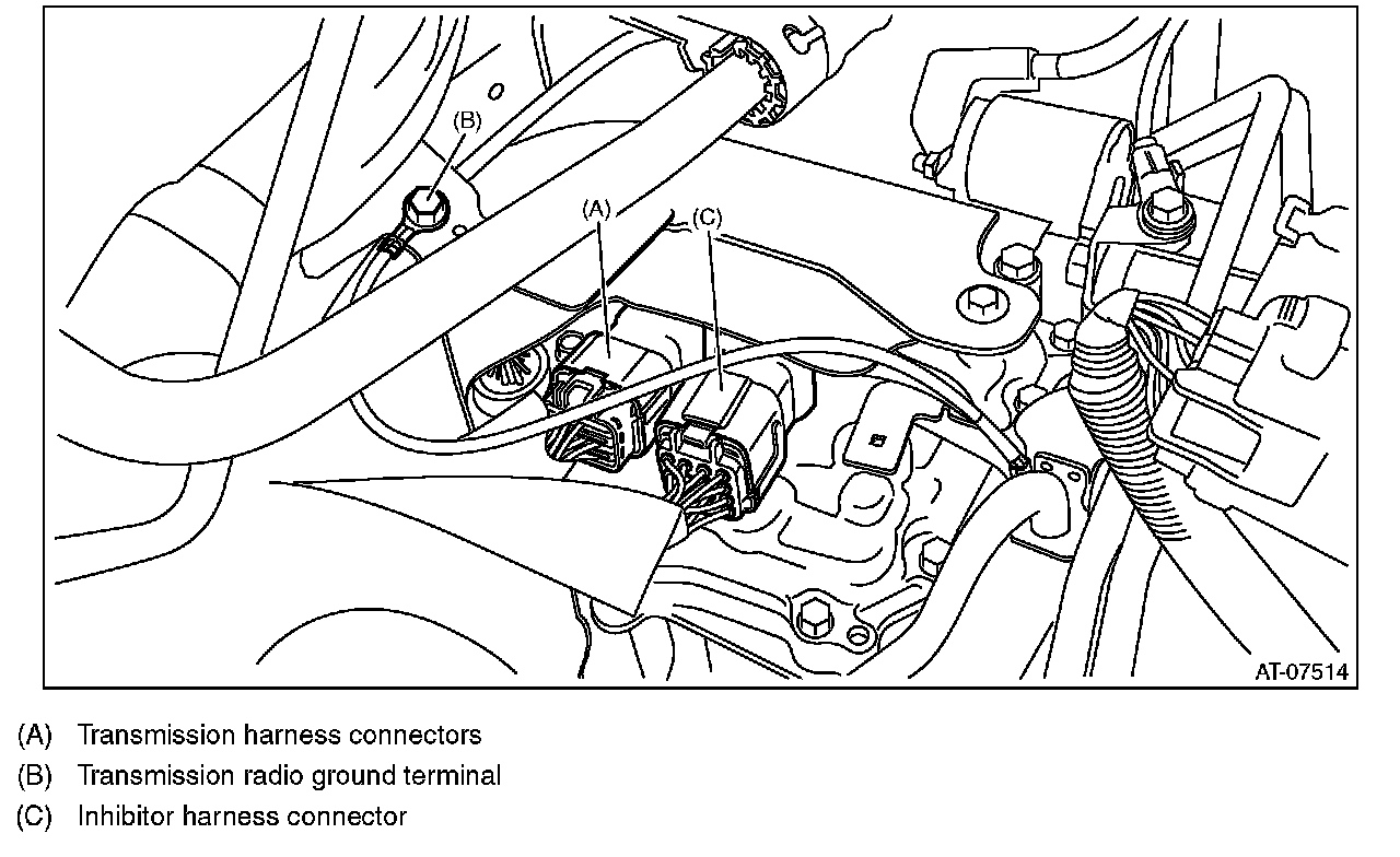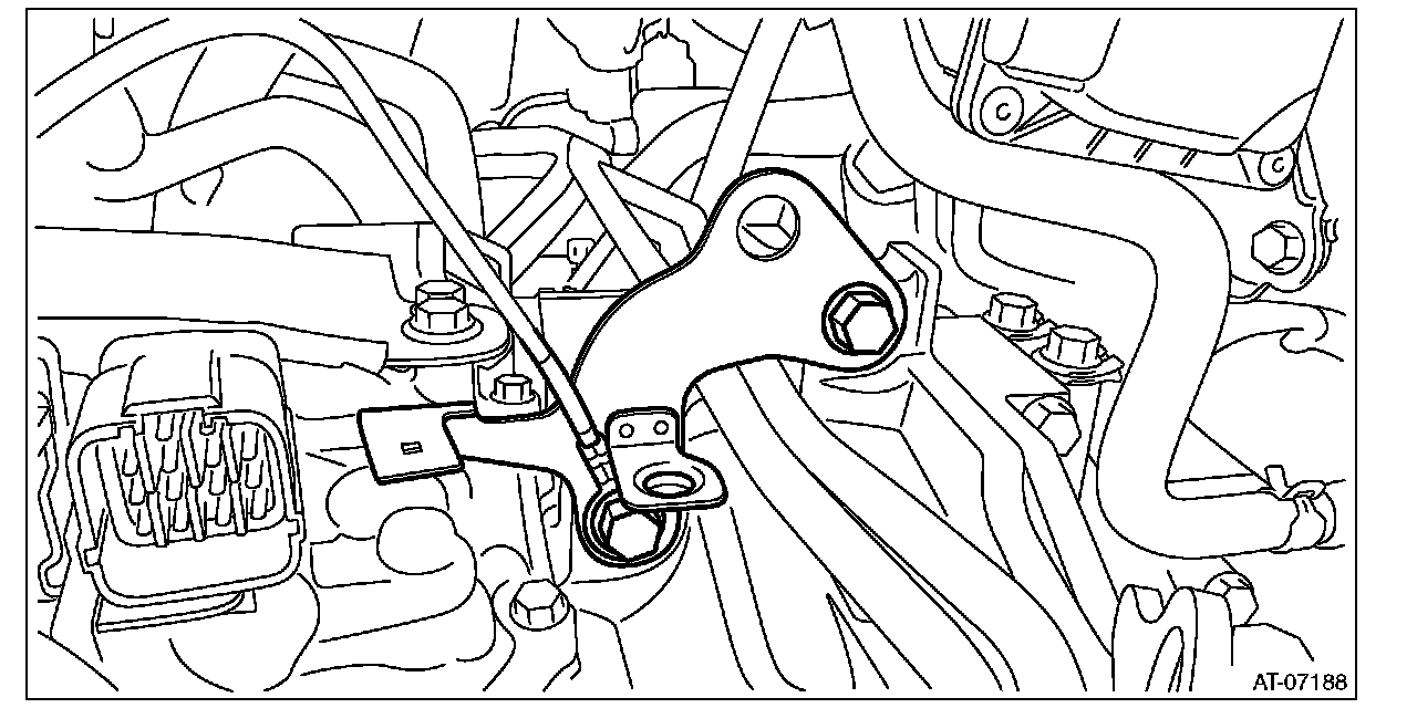 4) Remove the air breather hose from the transmission hanger, and remove the transmission hanger and the transmission radio ground cord.