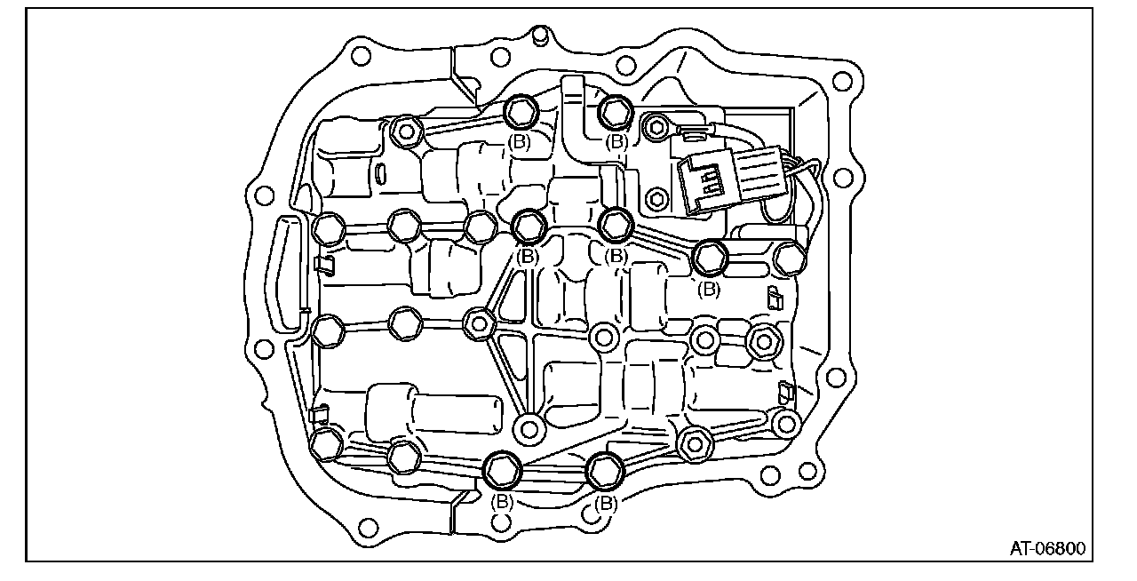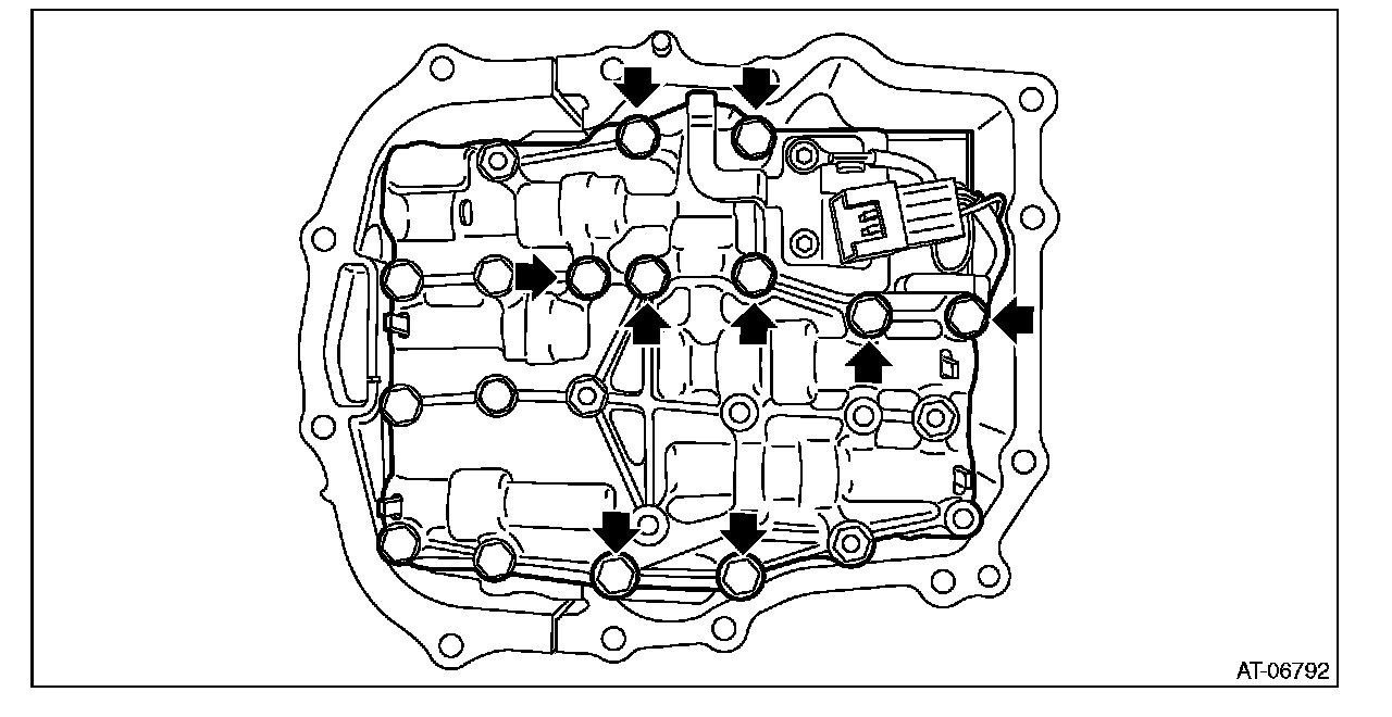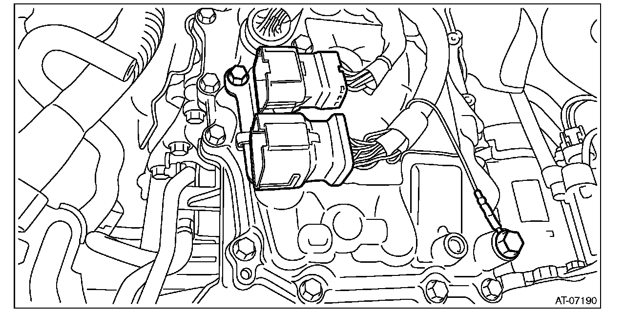 9) Connect the transmission harness connector to the control valve body, and install the valve cover.