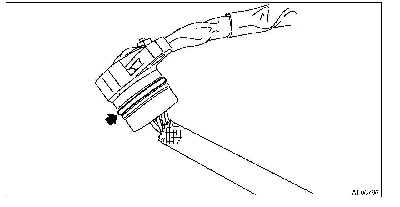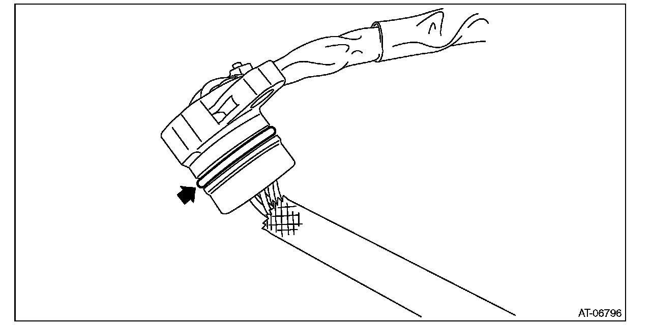 ^ Be careful not to spill CVTF on the exhaust pipe to prevent it from emitting smoke or causing a fire. If the CVTF adheres, wipe it off completely.