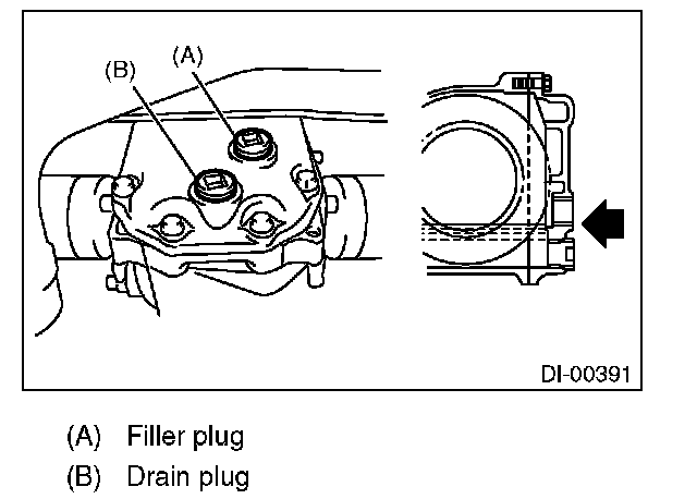 4) Fill the differential carrier with gear oil to the bottom of filler plug.