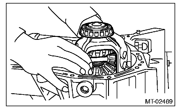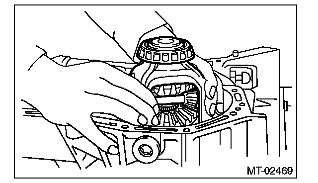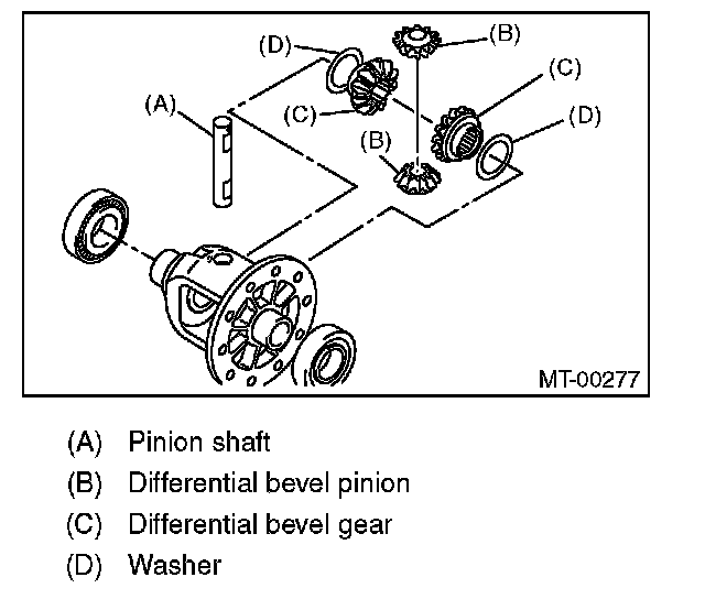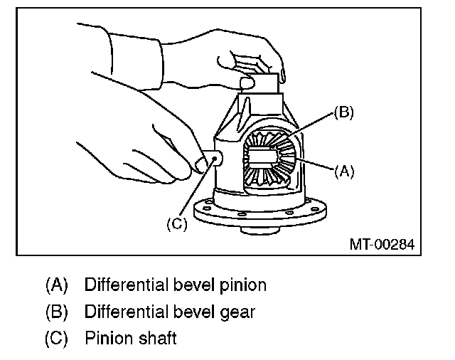 1) Install the differential bevel gear and differential bevel pinion together with washer, and insert the pinion shaft.