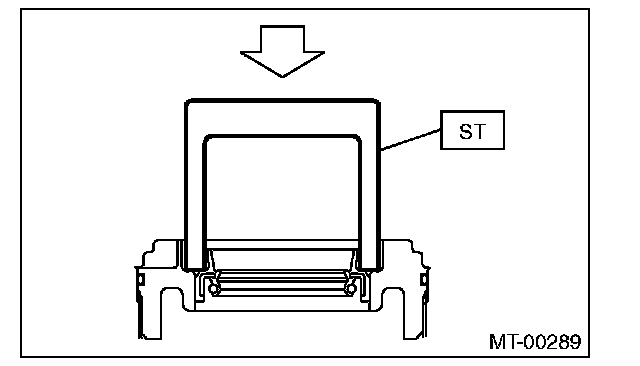 ^ Apply transmission gear oil to the oil seal lips, and install the oil seal while being careful not to deform the lip.