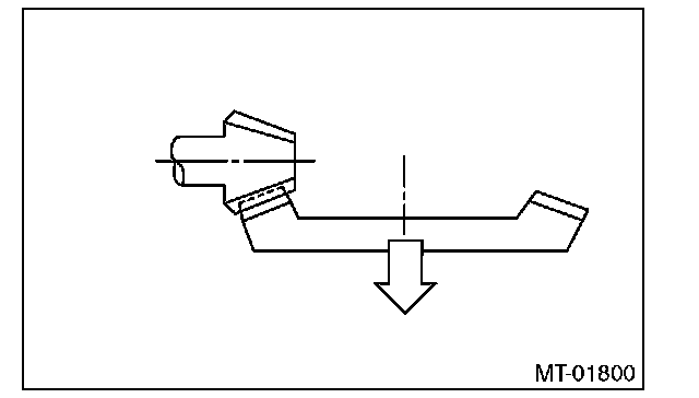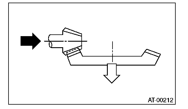Corrective action: Increase the thickness of drive pinion shim and tighten the side retainer to move the driven gear closer to the drive pinion shaft according to the procedure for bringing drive pinion shaft away from driven gear.