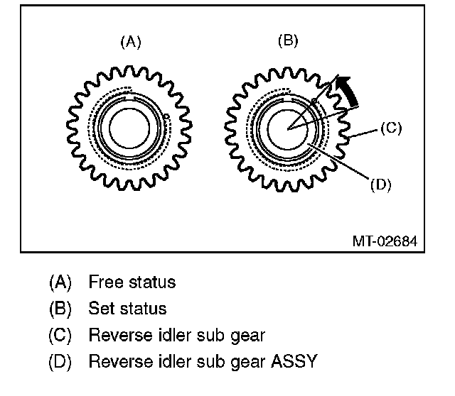 (1) When the reverse idler sub gear is at free status, put alignment marks on reverse idler sub gear and reverse idler gear.