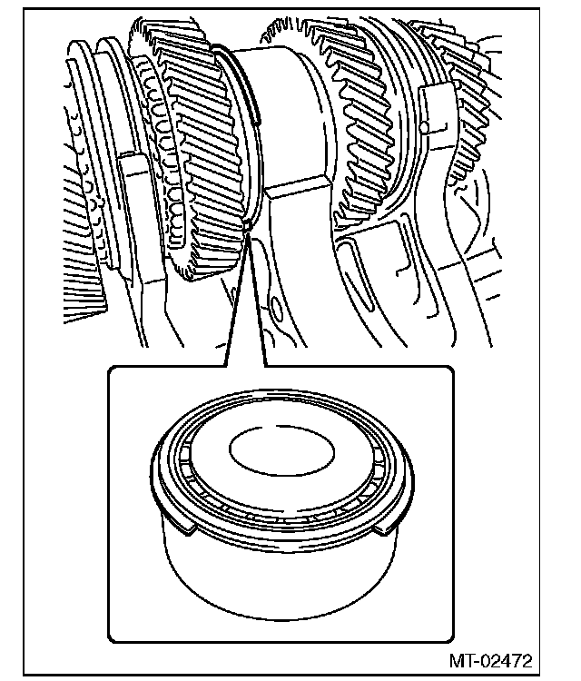 ^ Install the double taper roller bearing with snap ring side facing the 5th drive gear side.