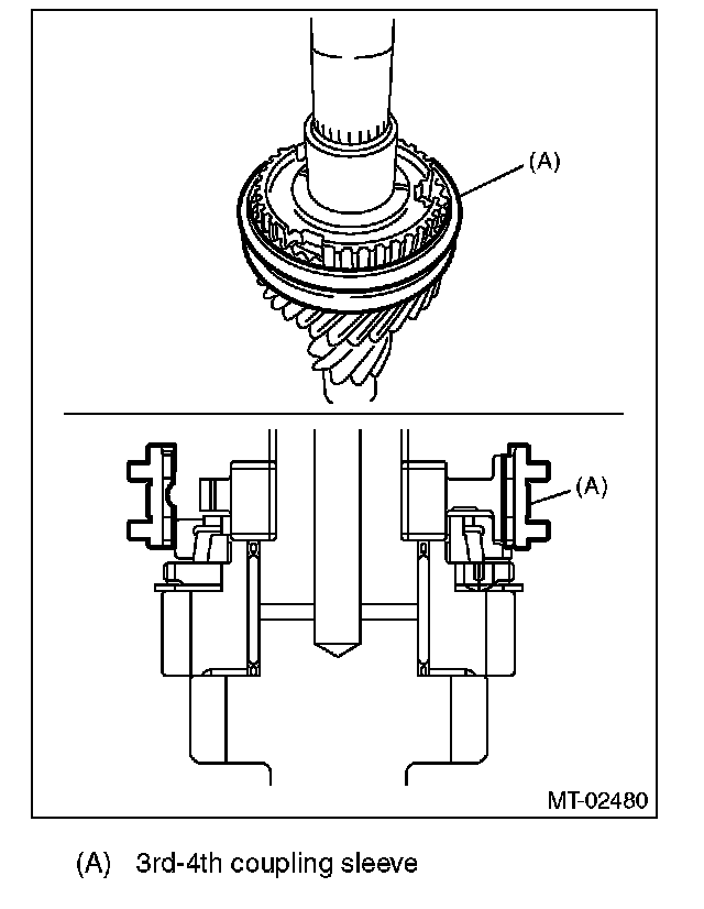 4) Install the 3rd-4th coupling sleeve to the 3rd-4th synchronizer hub.