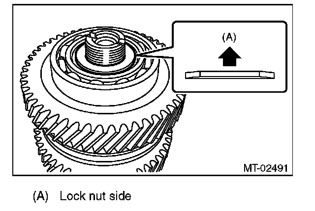 Install the ball bearing with the side which does not have lock nut mounting dent facing 6th drive gear.