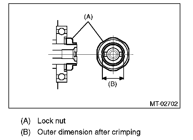 18) Crimp the lock nut at two locations so that the dimension (B) becomes 23.3 mm (0.92 in) or less.