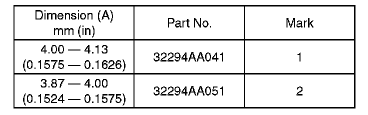 Measure the protrusion amount (A) of bearing from transmission main case surface, and select a suitable plate in the following table.