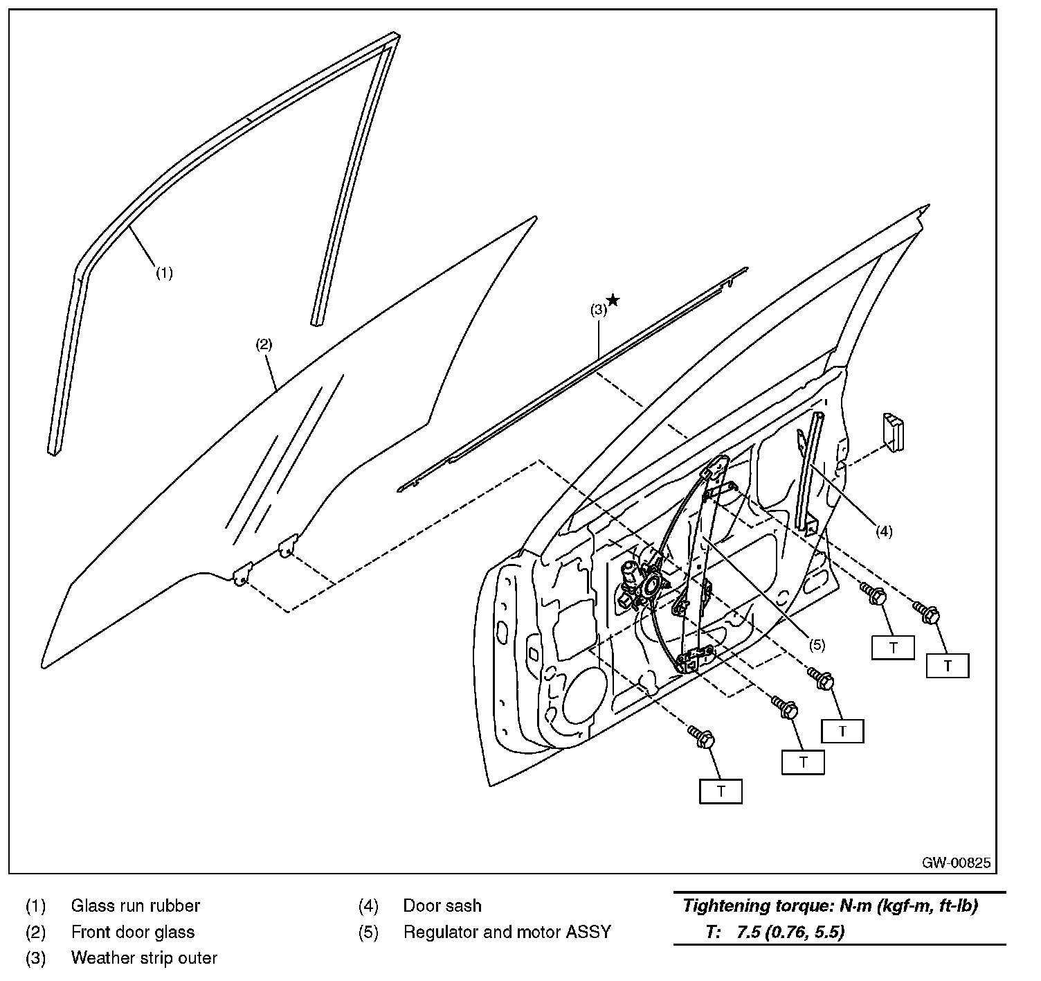 Refer to "COMPONENT" of "General Description". [Ref. to FRONT DOOR GLASS, COMPONENT, General Description.]
