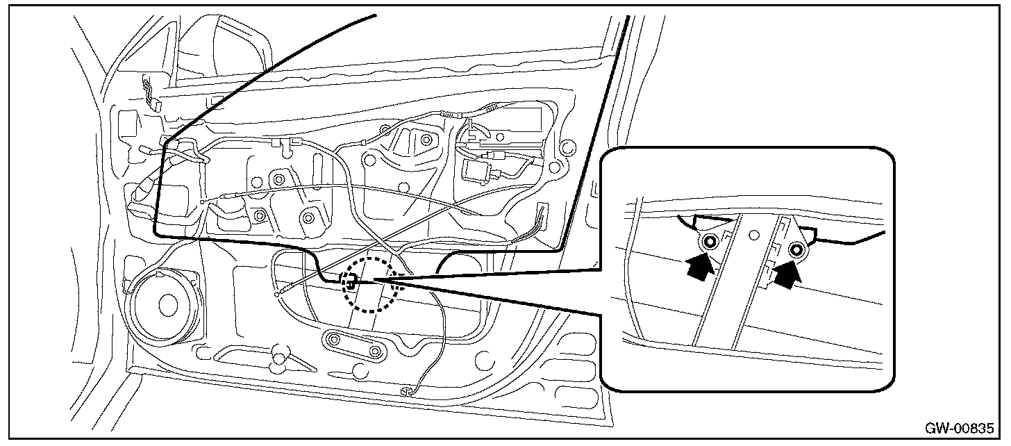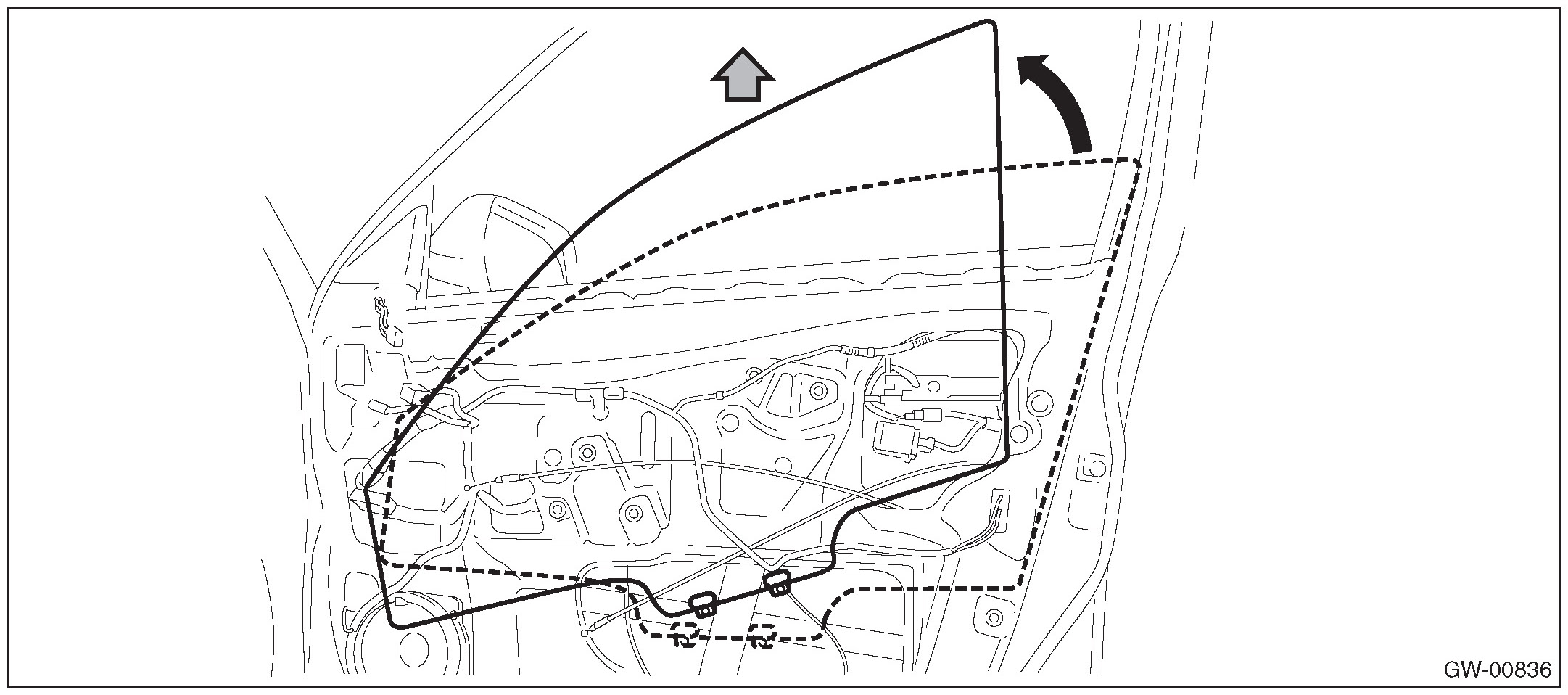 CAUTION: Make sure that the glass run rubber is placed securely in the door frame and sash.
