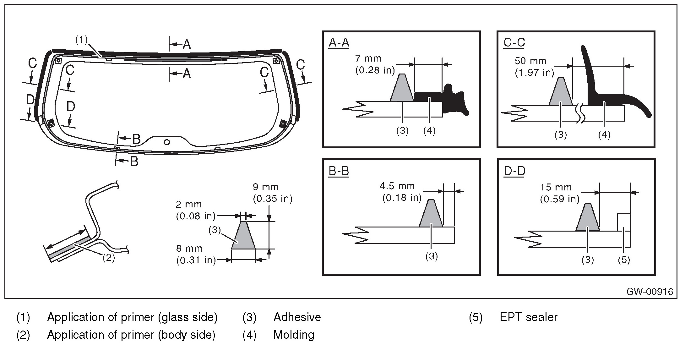 - For minimum drying time and vehicle standing time before driving after bonding, follow instructions or instruction manual from the adhesive manufacturer.