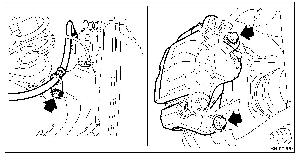 (2) Remove the mounting bolts, and then remove the rear disc brake caliper.