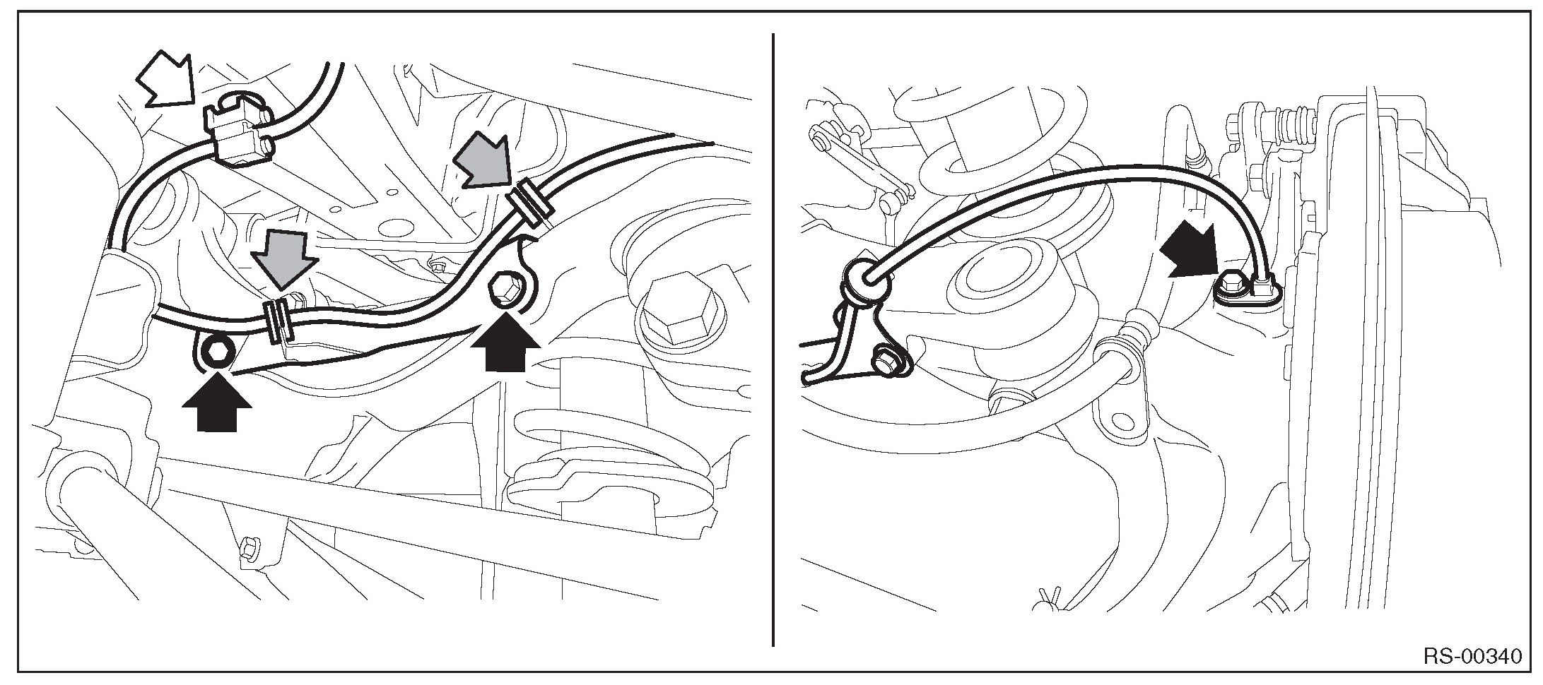 (1) Remove the bolts, and remove the rear ABS wheel speed sensor.