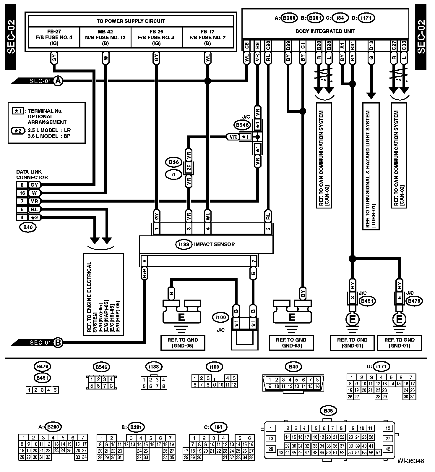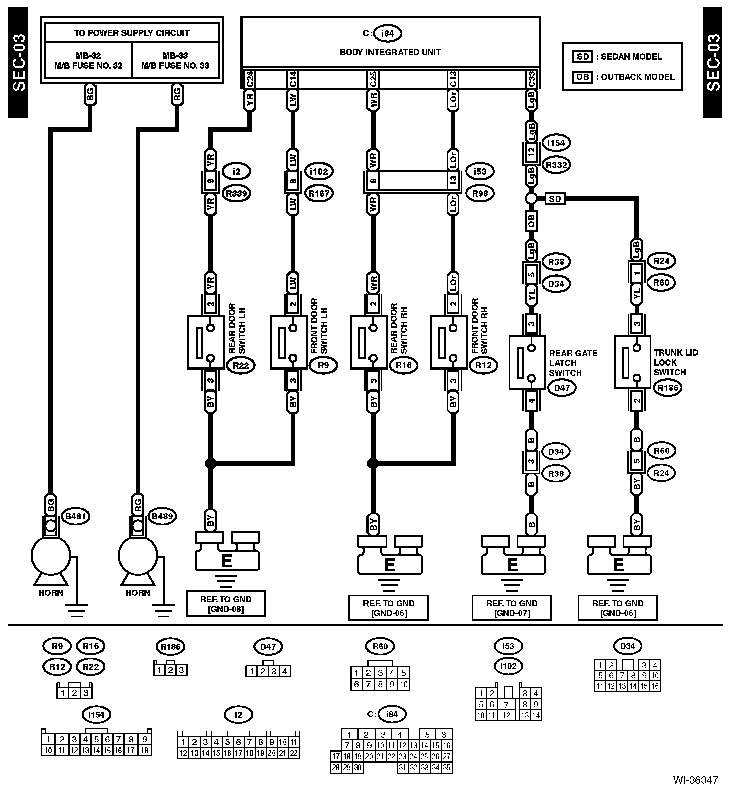 The locations of the Connectors or Grounds shown within these diagrams can be found via the connector or ground number at Vehicle Locations.