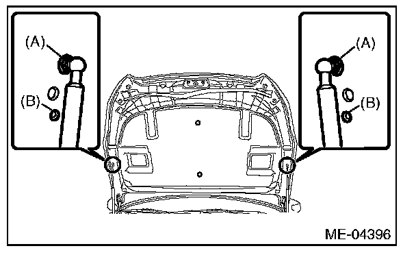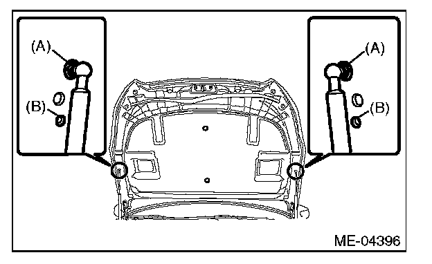 7) Change the bolt mounting position from (A) to (B), and completely open the front hood.