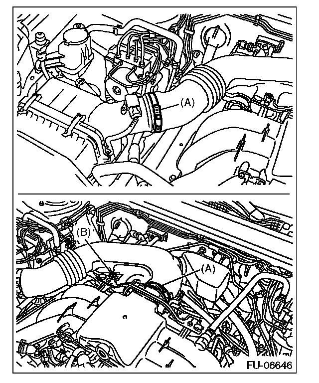 8) Loosen the clamp (A) which connects the air intake boot assembly.