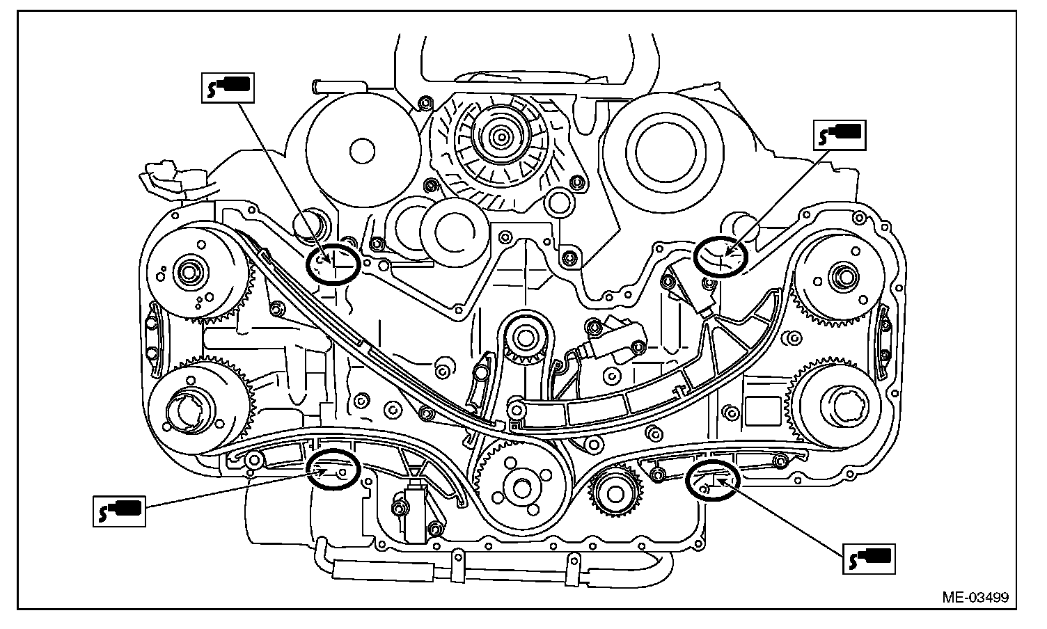 26) Make sure there is no oil leaks in the chain cover mating surface.