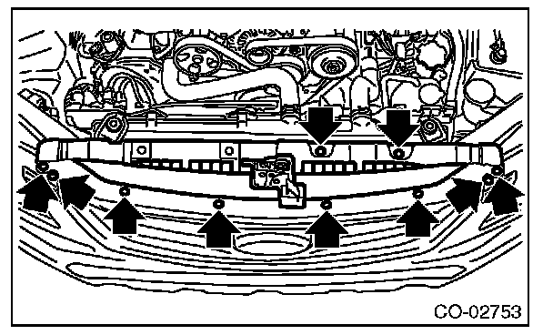 Remove ten clips when removing the grille bracket.
