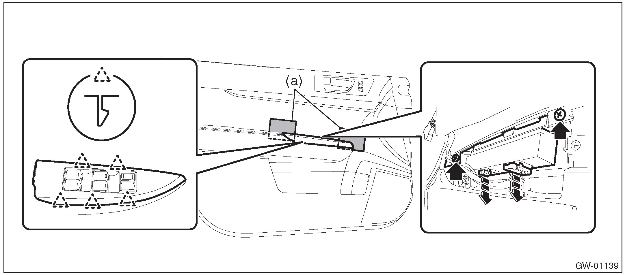 1. Insert a sheet of protective paper (a) between switch panel and door trim.