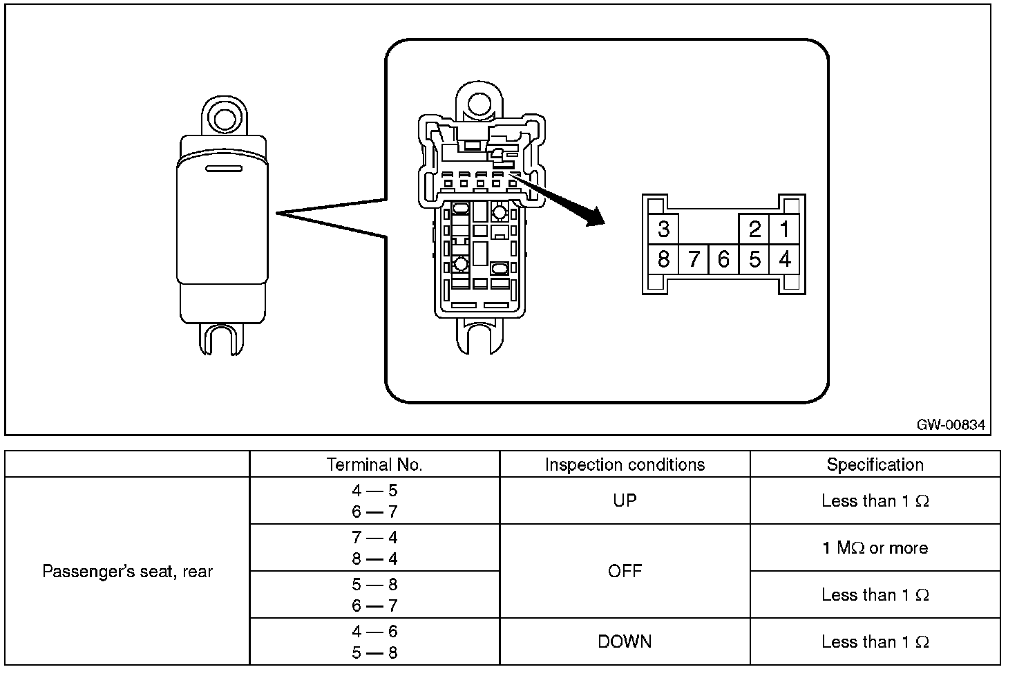 3. Replace the sub switch if the inspection result is not within the standard value.