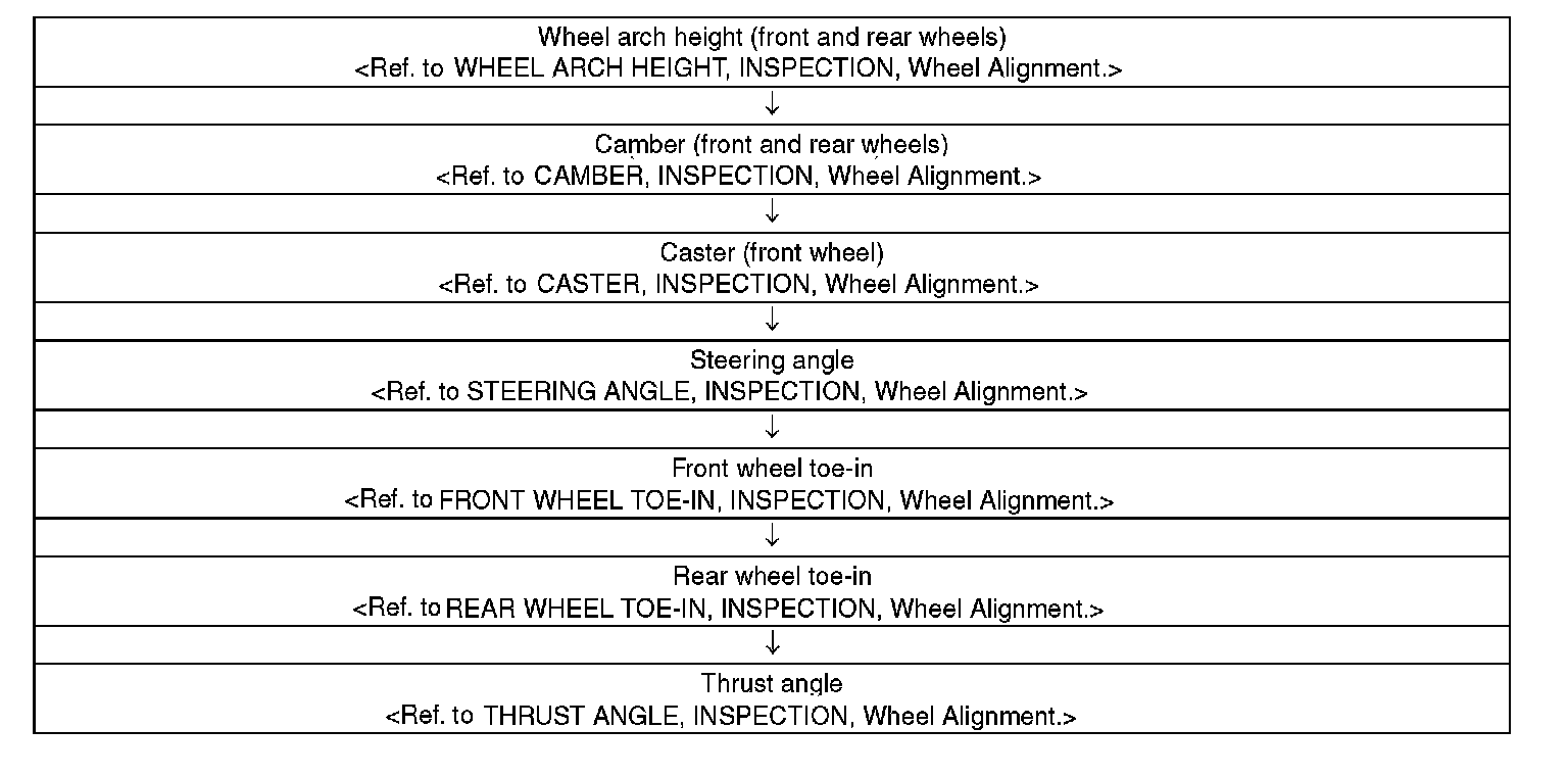 Check, adjust and measure the wheel alignment in accordance with the procedures indicated in the figure.