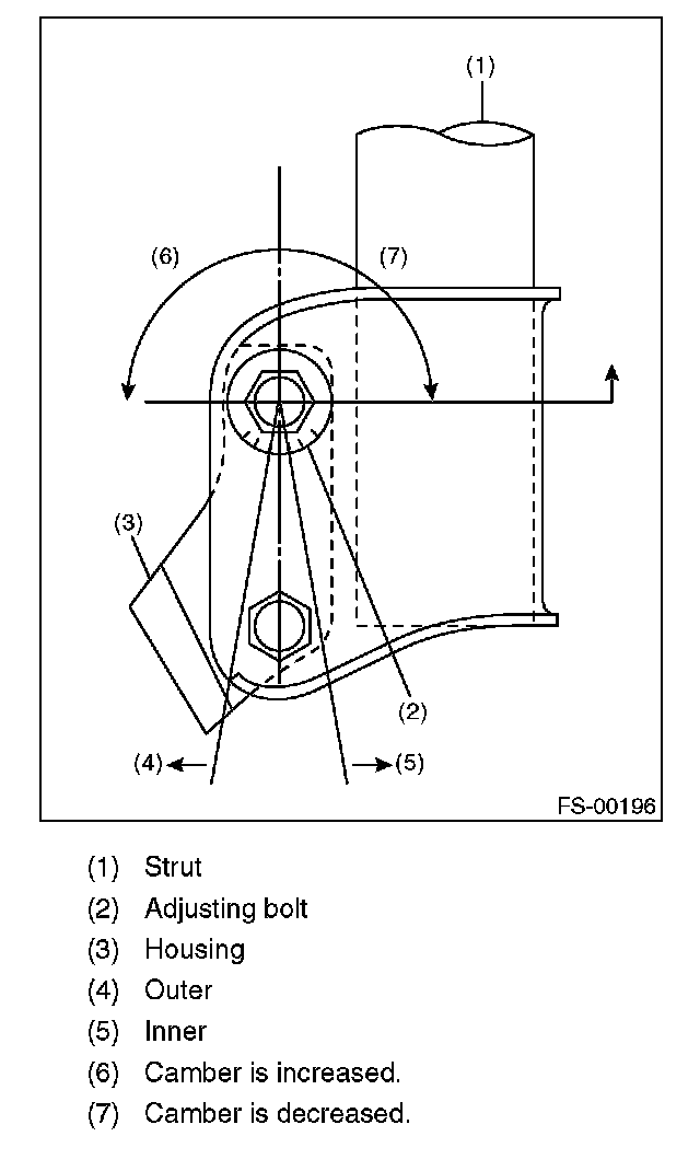 3) Turn the camber adjusting bolt so that the camber is set at specification.