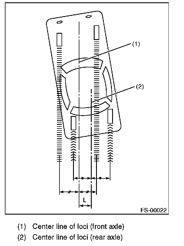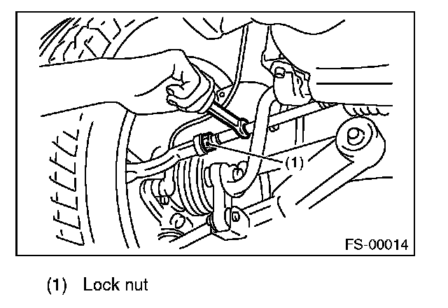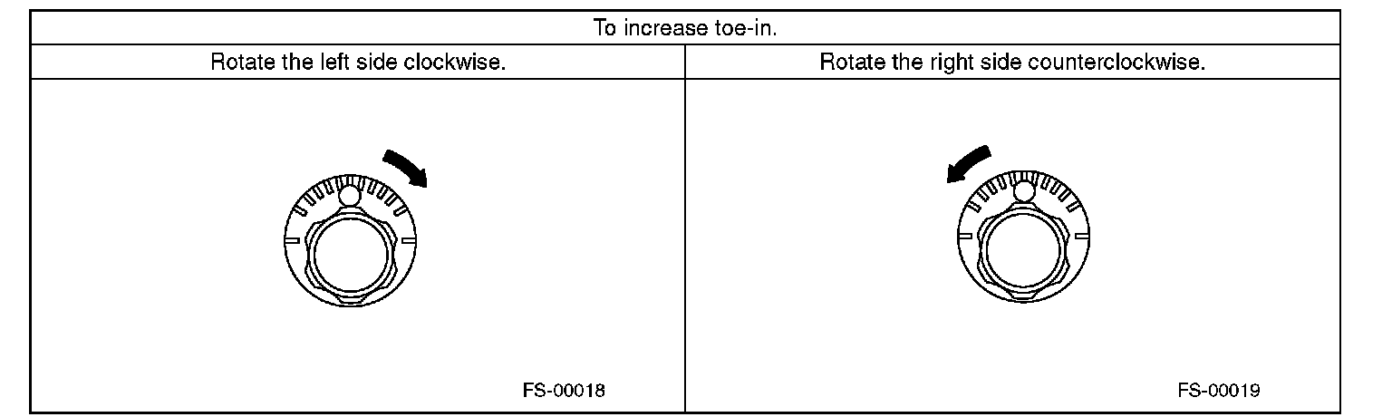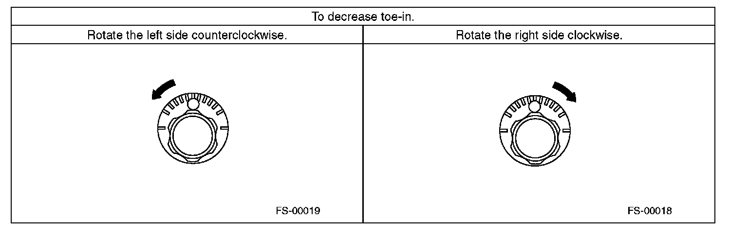 2) When one rear wheel is adjusted in a toe-in direction, adjust the other rear wheel equally in toe-out direction, in order to make the thrust angle adjustment.