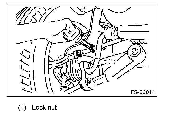 2) Loosen the left and right side steering tie-rod lock nuts.