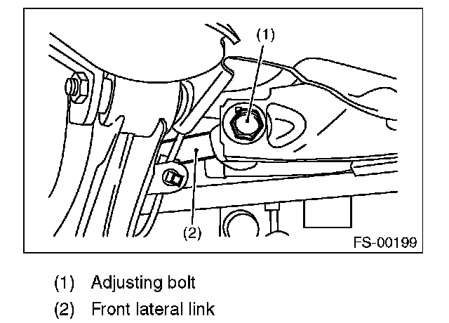 1) Make thrust angle adjustments by turning the toe-in adjusting bolts of the rear suspension equally in the same direction.