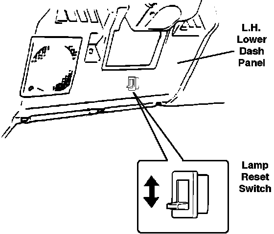 At mileage intervals of 50,000, 80,000 and 100,000 miles, the Check Engine lamp will be illuminated indicating required service and maintenance is to be performed. After performing the required service, the lamp may be turned off by resetting the cancel switch located behind the L.H. side of the instrument panel.
