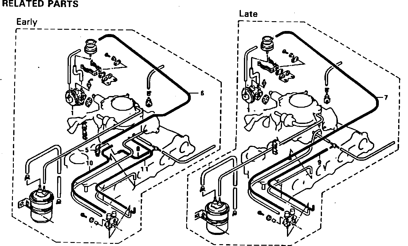 Federal specification vehicles. To determine whether you have an early or late type vehicle late EGR system, visually check the intake manifold. As shown in the following illustrations, the early one is equipped with the Bimetallic Vacuum Switching Valve (BVSV) and the late is not. For service details on EGR system, refer to the Federal specification in the Sidekick Service Manual.
