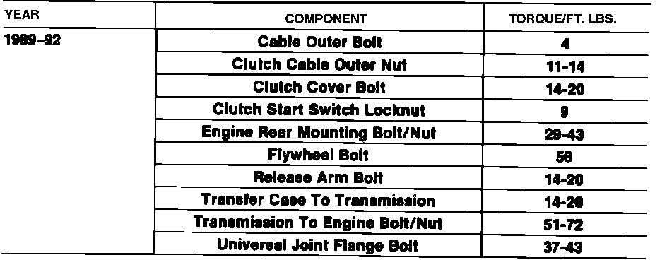 Tightening Specifications: