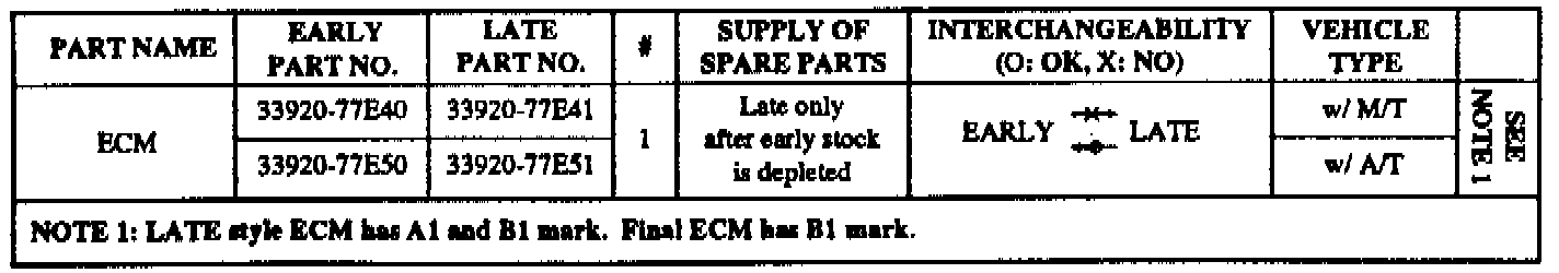 This bulletin is to inform you of the modifications to the ECM which have been carried out since November 1995 production. There have been two revisions to the ECM: LATE style type A1 and LATE style type B1.