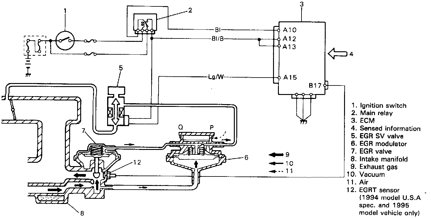 Only 1994 model U.S.A. spec. and 1995 model vehicle is equipped with EGR temperature sensor (EGRT sensor).