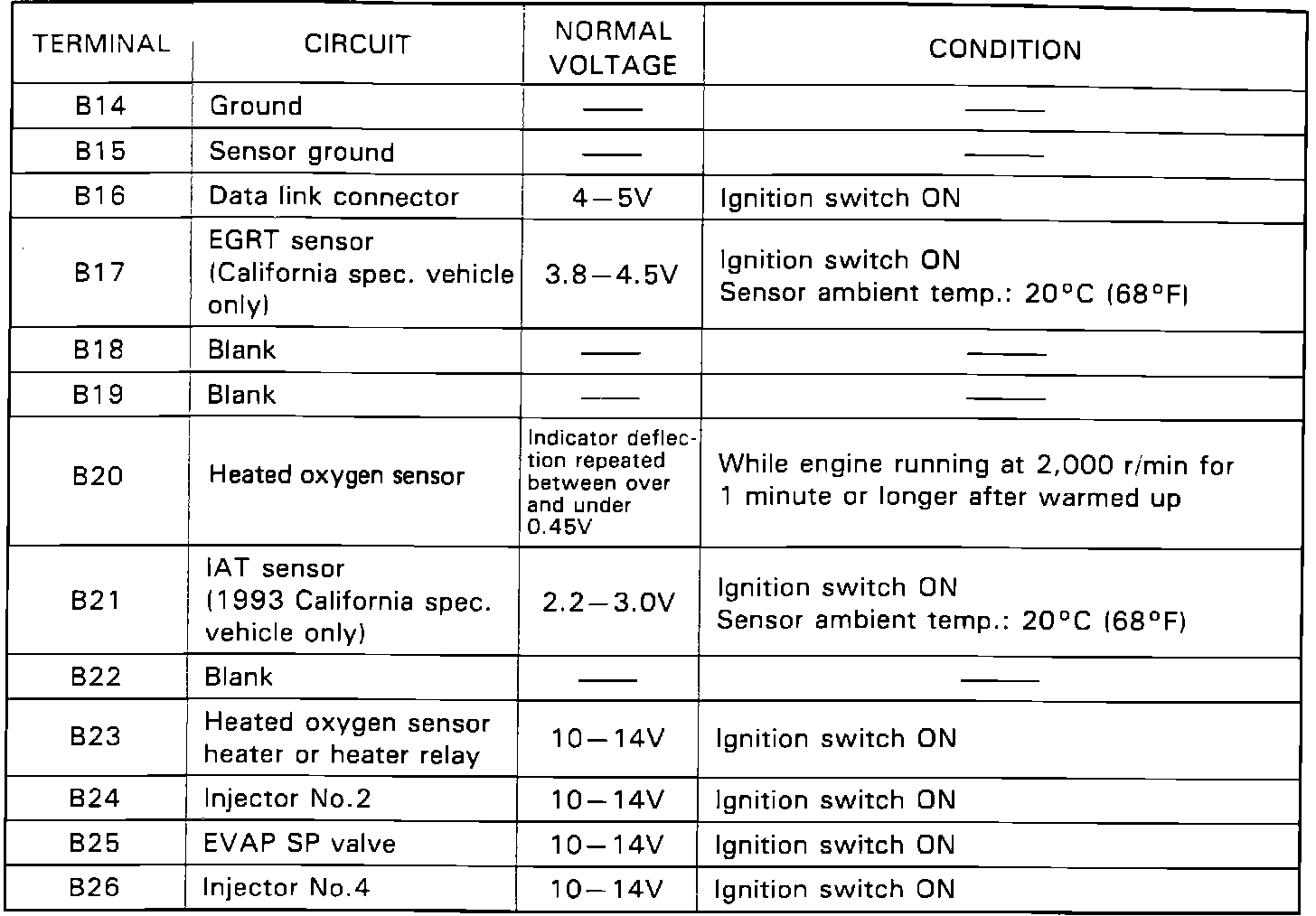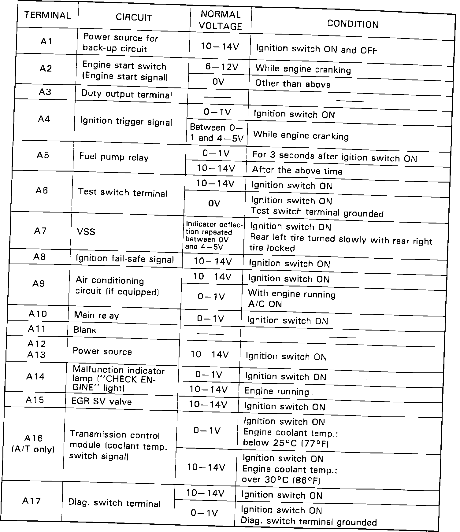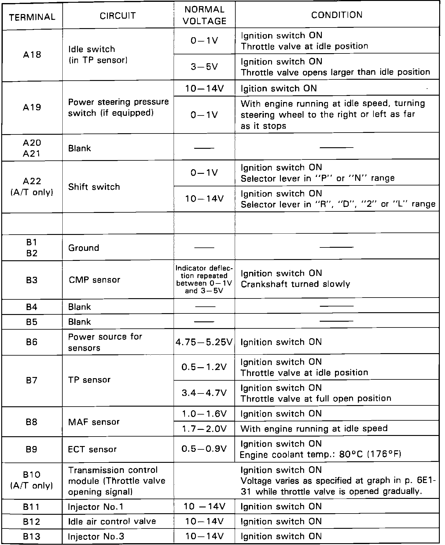 ECM Terminal Voltage Values: