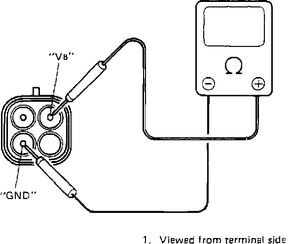 - Using an ohmmeter, measure resistance between terminals "Vb" and "GND"