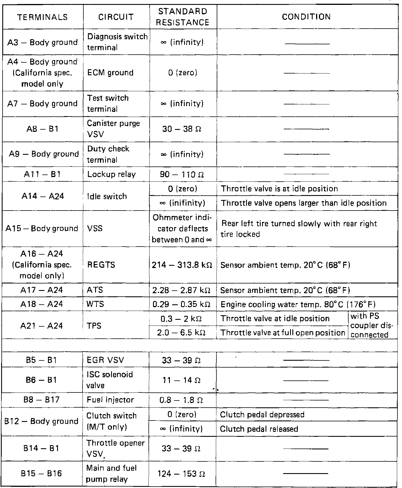 ECM Terminal Resistance Values: