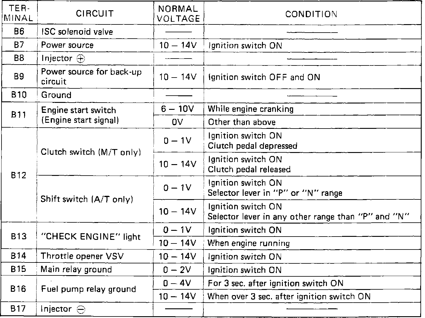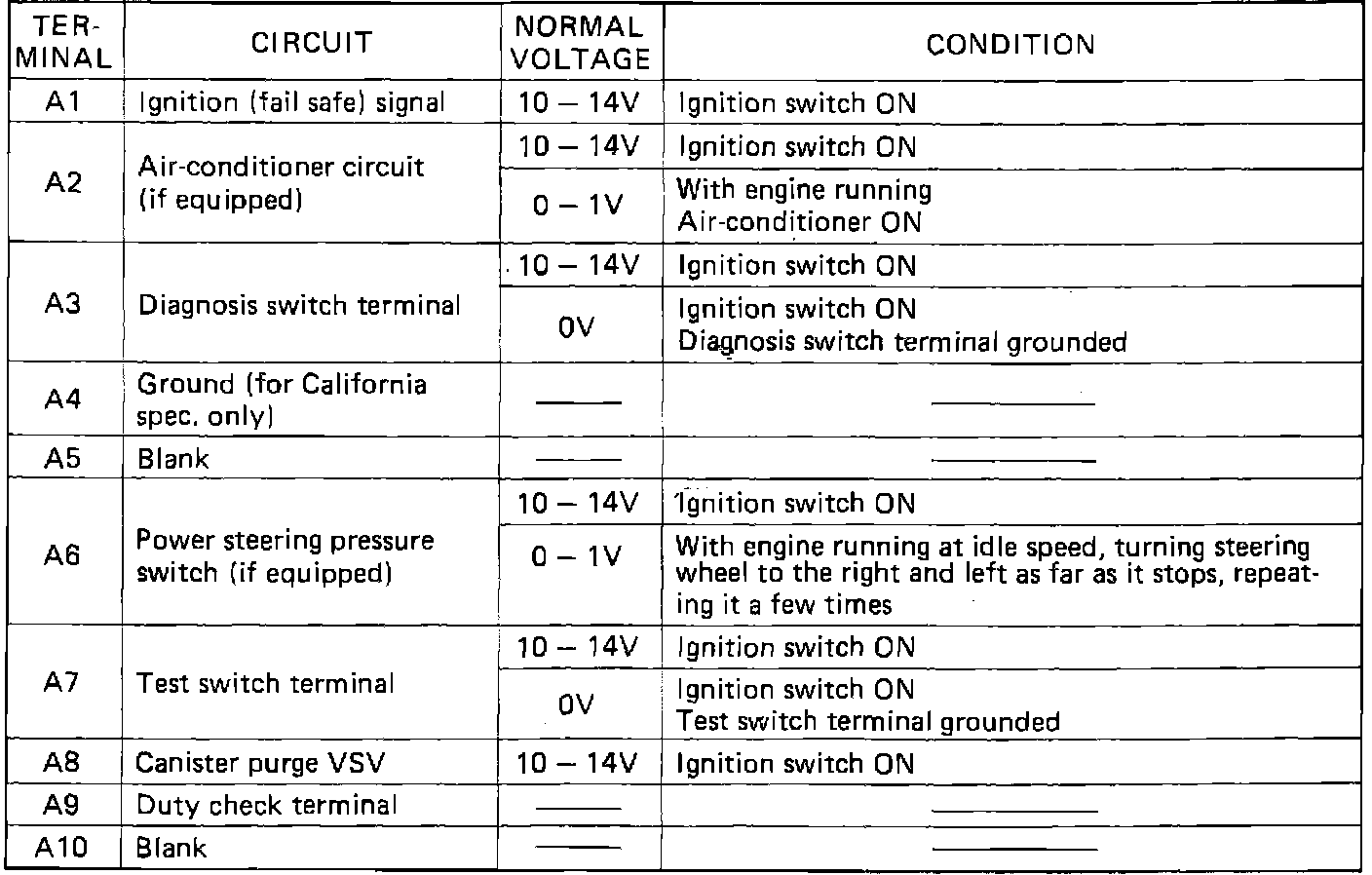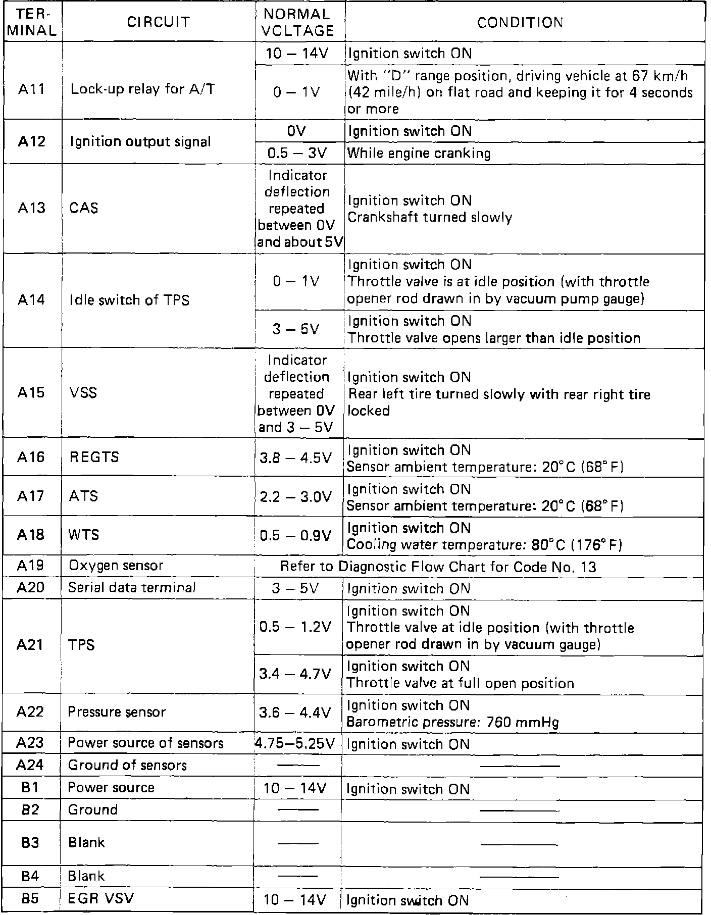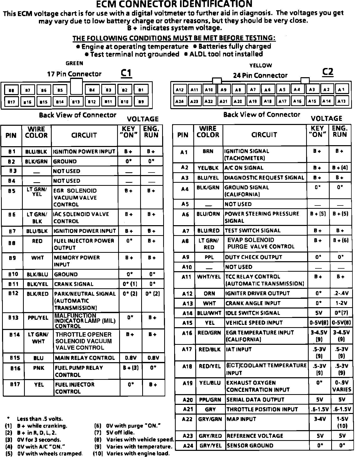 ECM Terminal Voltage Values: