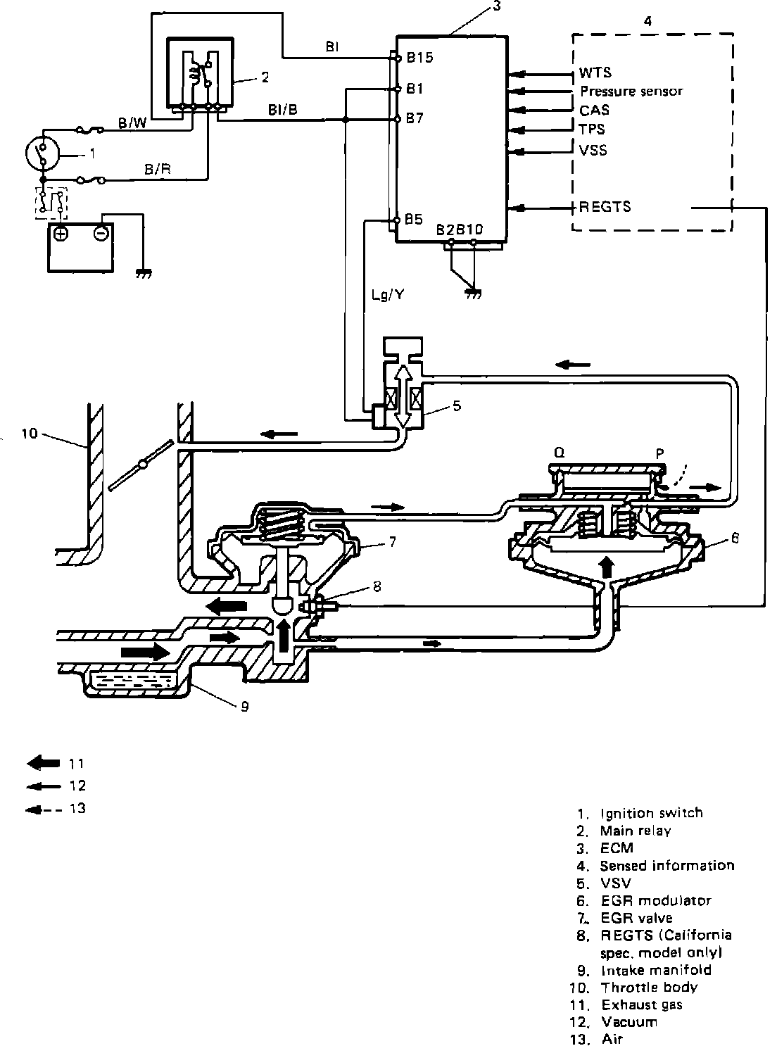 The EGR valve is controlled by EGR modulator and VSV controlled by ECM according to signals from various sensors.