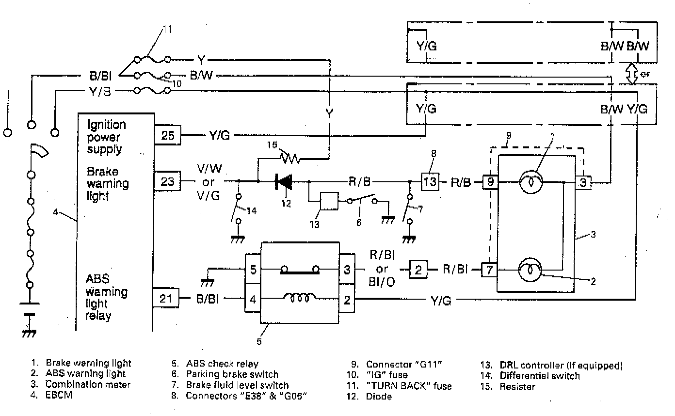 The function of the diode between CKT "R/B" and "VOW" is to prevent a grounded signal to the EBCM when either the parking brake is applied or the brake fluid level switch is closed, thus preventing a false DTC 85.