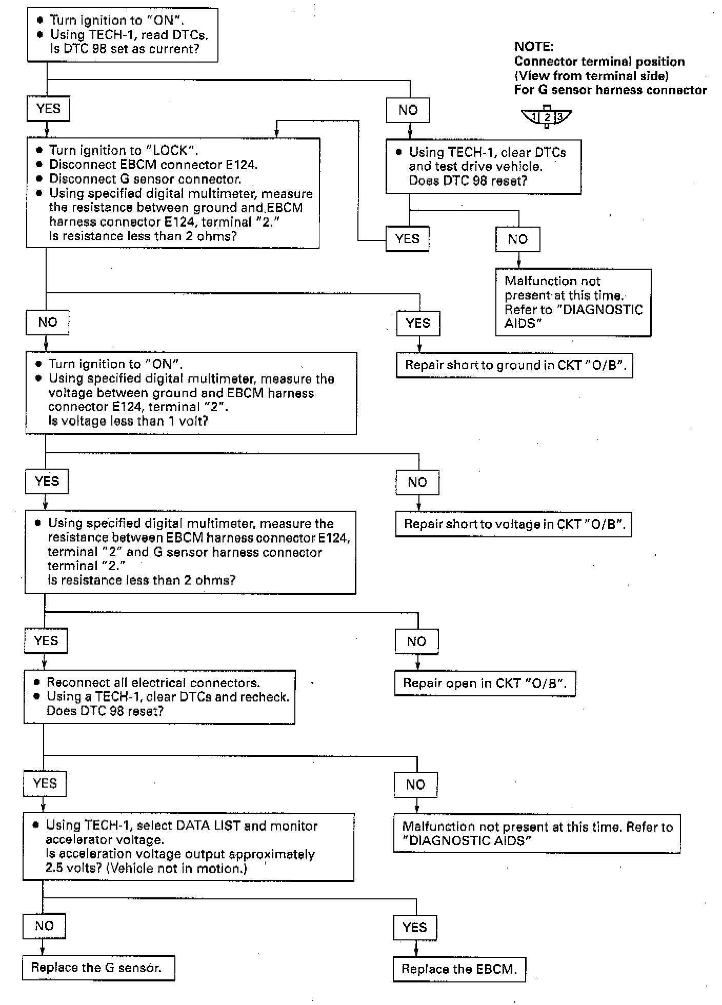 detects a short to battery in G sensor signal circuit.
