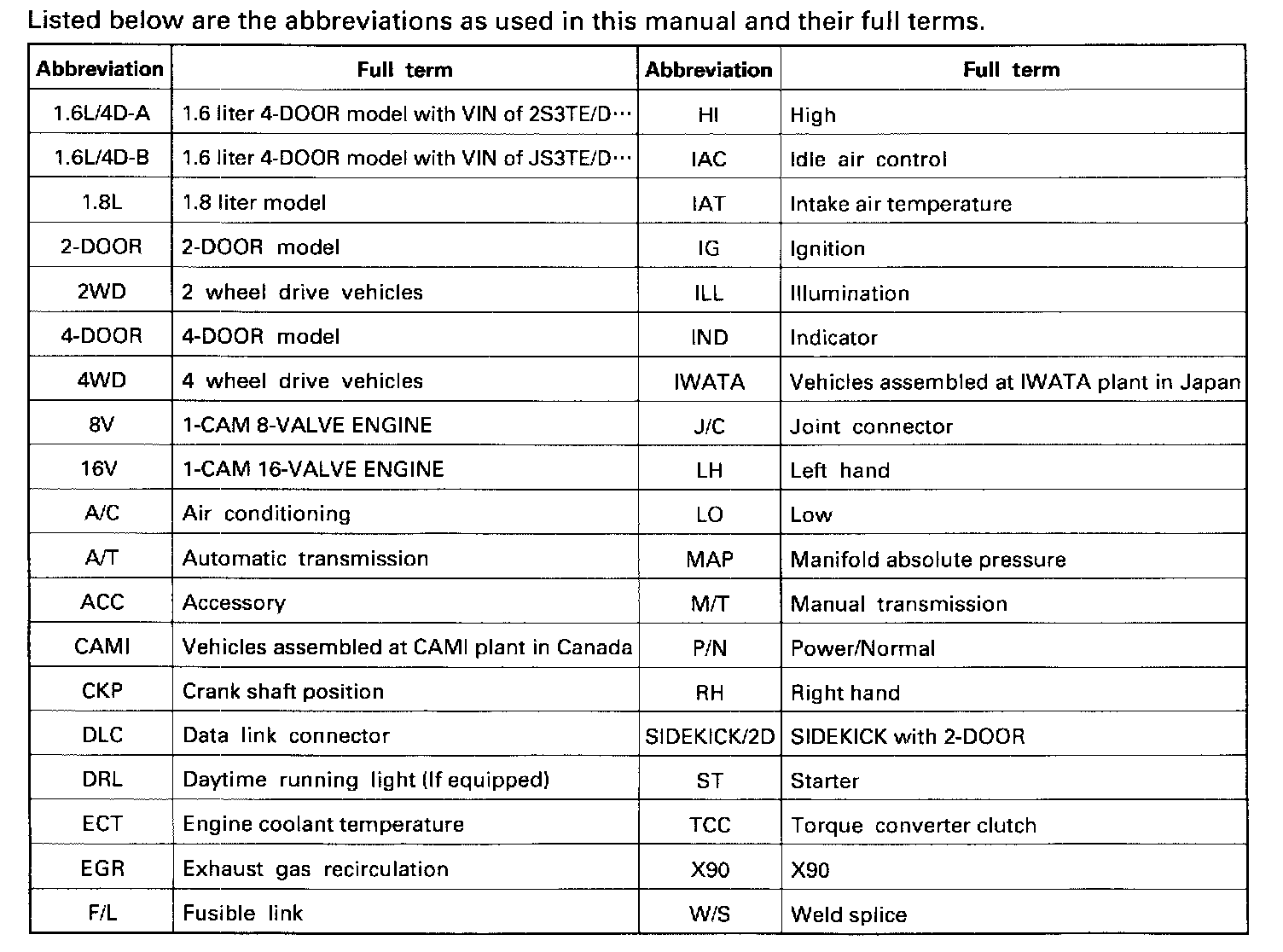 Sidekick JS 2D 2WD L4-1.6L