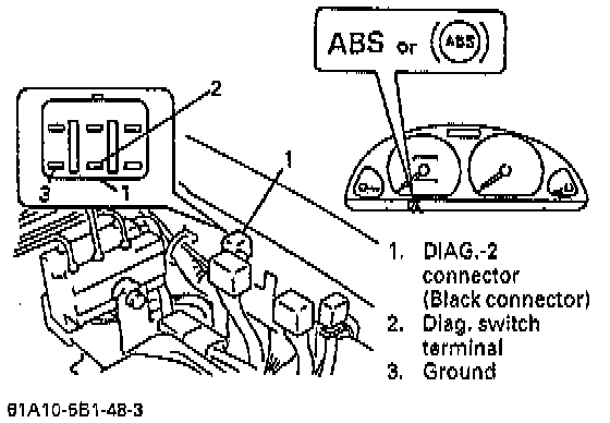 7. With diagnostic switch terminal of DIAG.-2 connector connected to ground (by using service wire,) turn the ignition switch "ON" and check if the ABS warning lamp indicates DTC 12.